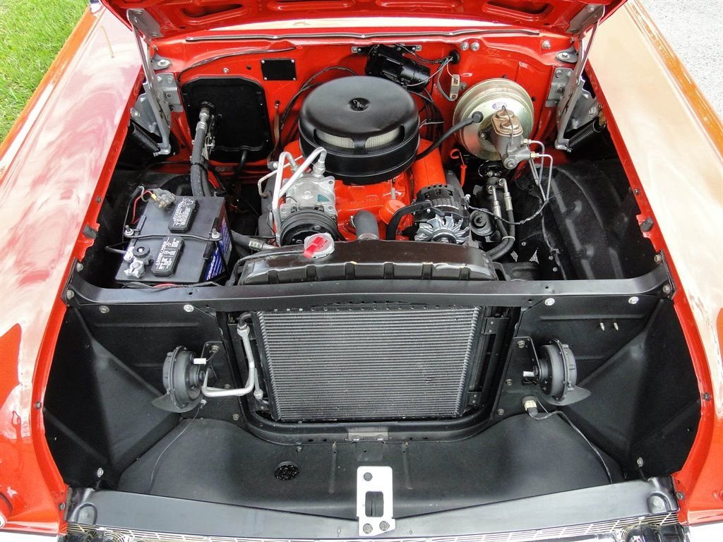 Under the hood resides the numbers-matching 283 CID V8 engine, bearing the correct G suffix code and expertly rebuilt to deliver smooth, reliable power. The fully reconditioned Powerglide 2-speed automatic transmission features a distinctive finned aluminum pan, offering effortless cruising capability for both local shows and extended road trips.
