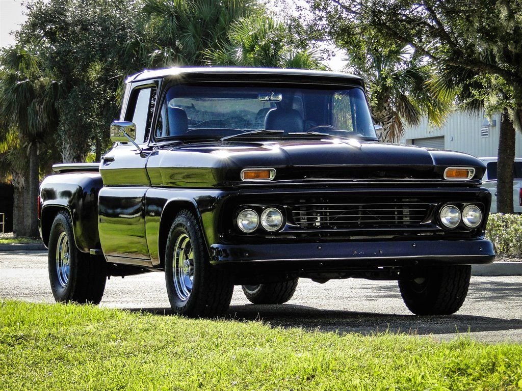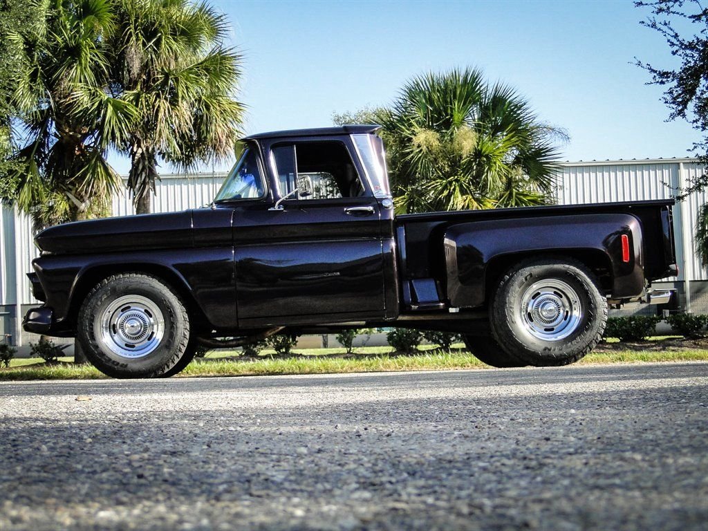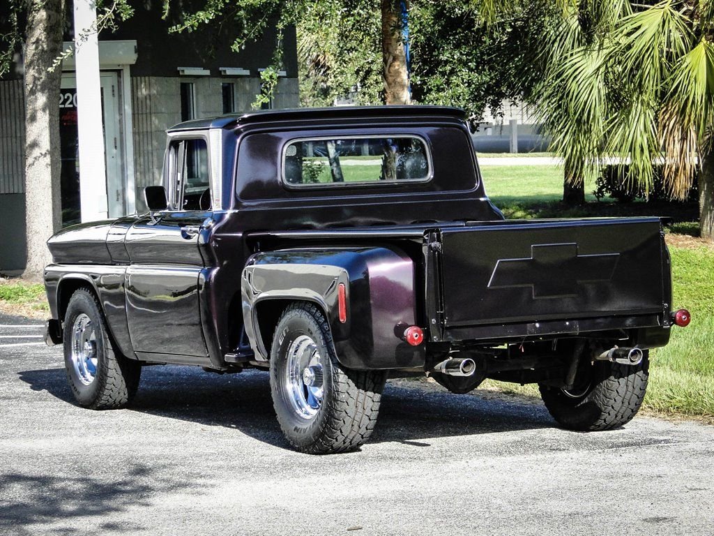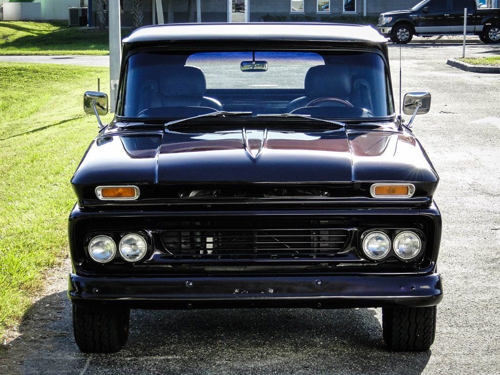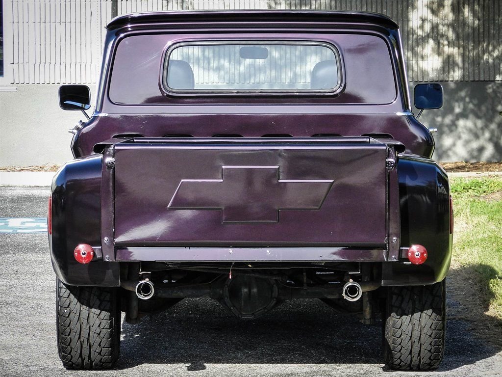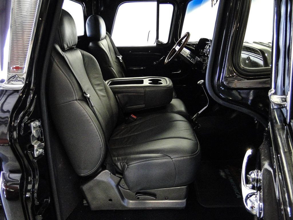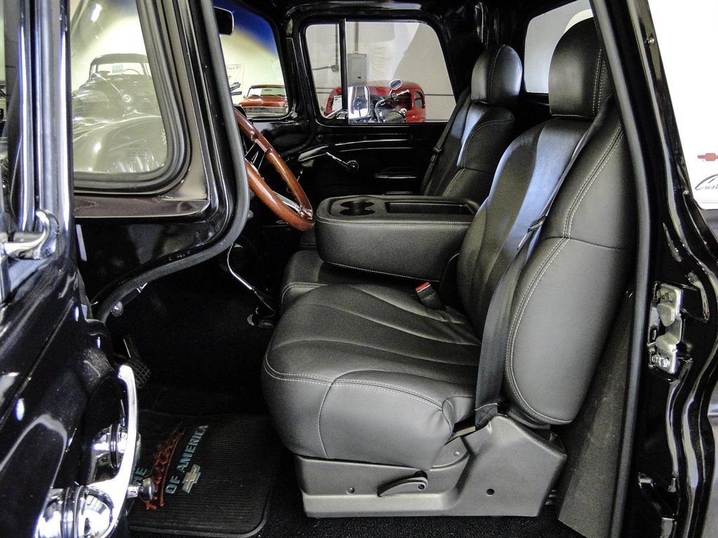 Whats not to love about a classic Chevy pickup with modern options? This 1960 Chevrolet C10 Custom really grabs your attention with the glossy Blackberry Metallic paint job. The paint is offset with beautiful 17 chrome rally wheels wrapped in Falken tires. Dual exhaust with chrome tips exits the rear under the Chevrolet bowtie that is emblazoned on the tailgate. The chrome trim down the back of the cab brings a touch of class to this pickup and lets onlookers know its a C10 Custom. Under the hood rests a 350 CID V8 engine with an Edelbrock 4-barrel carburetor, HEI ignition, aluminum radiator and electric fan. Vintage Air A/C has been added to the truck with a very clean installation. Power steering and power brakes make this truck drive like a dream and capable of handling long hauls with ease. The inside of the bed has been sprayed with bedliner for a clean look and to allow it to be used without worry of damaging the paint. Moving to the interior, you will be driving in comfort with modern leather seats with a fold down center console that doubles as a third seat if needed. It provides storage and cupholders when not in use. The leather seats go nicely with the aftermarket wood steering wheel, Lokar shifter and black gauges with digital odometer. A Custom Auto Sound radio has been added along with subwoofers under the seats and kick panel speakers. Sound deadener under the new carpet makes for a nice quiet ride. Other new parts include: all weather stripping, wire harness and a complete front end rebuild. This truck is ready to show and go, and is certainly priced to move! Dont wait, call us now before someone else owns this stunning 1960 Chevy C10!