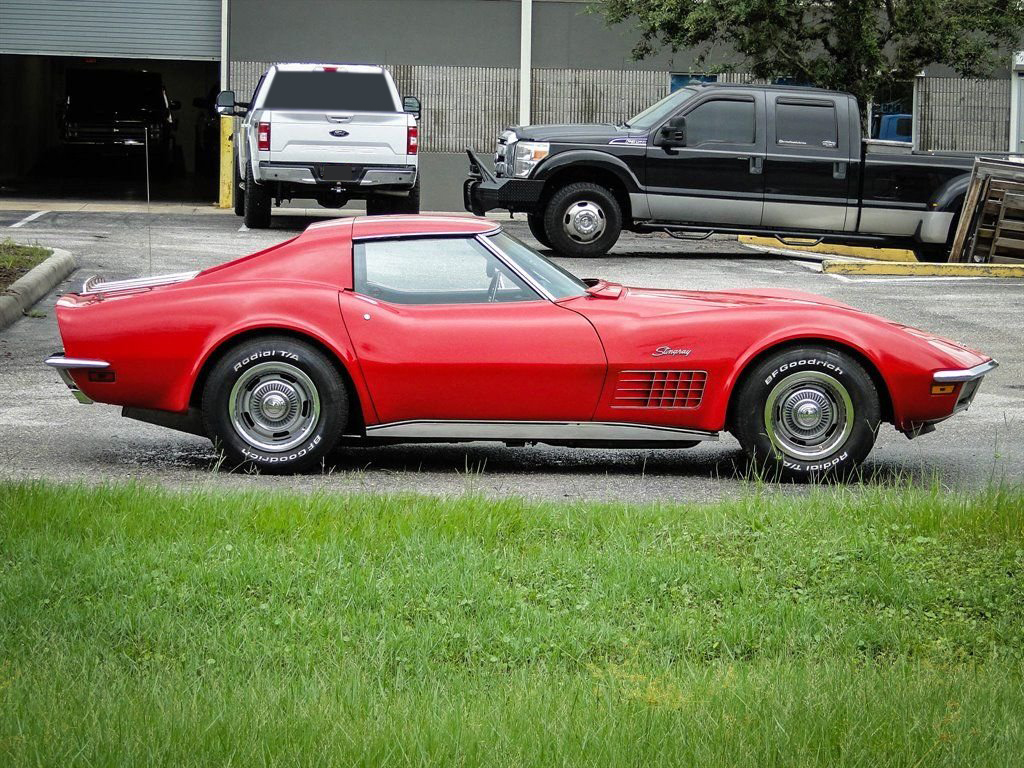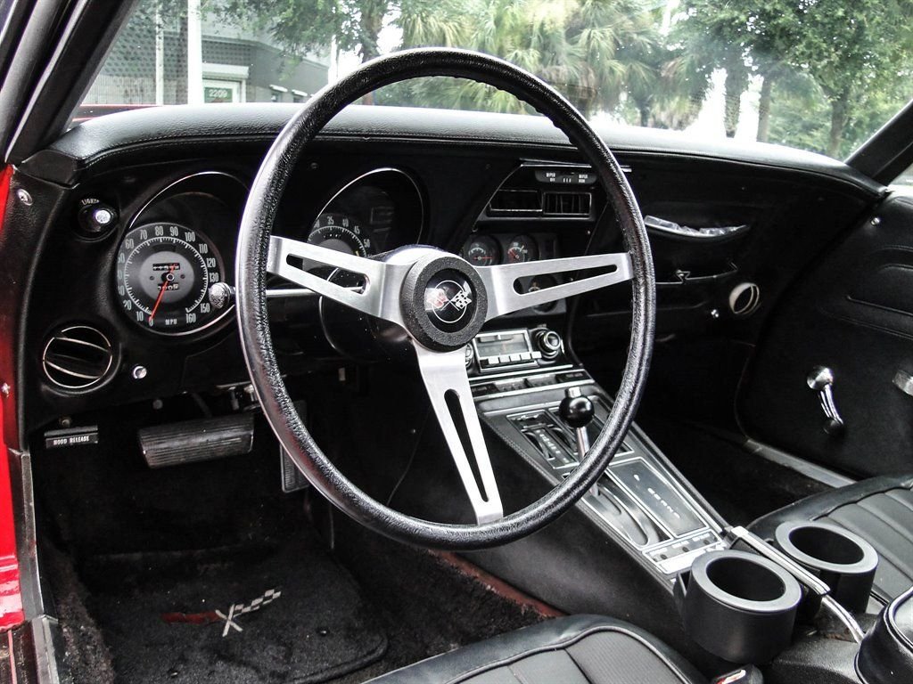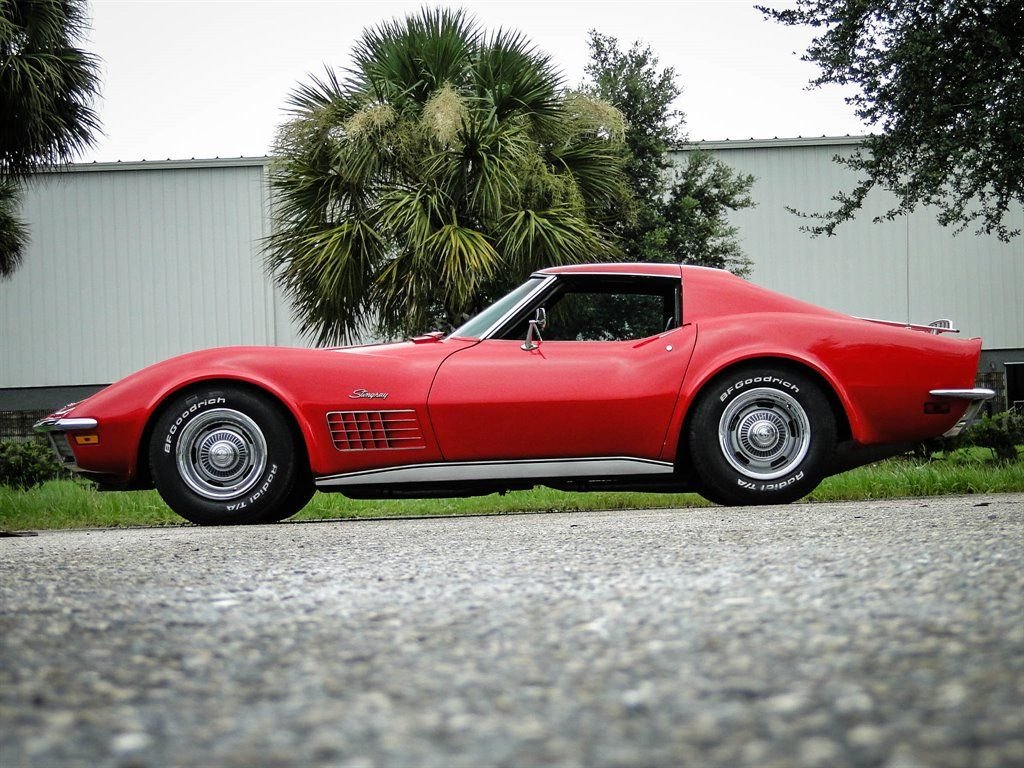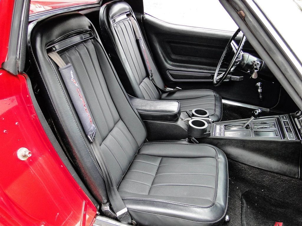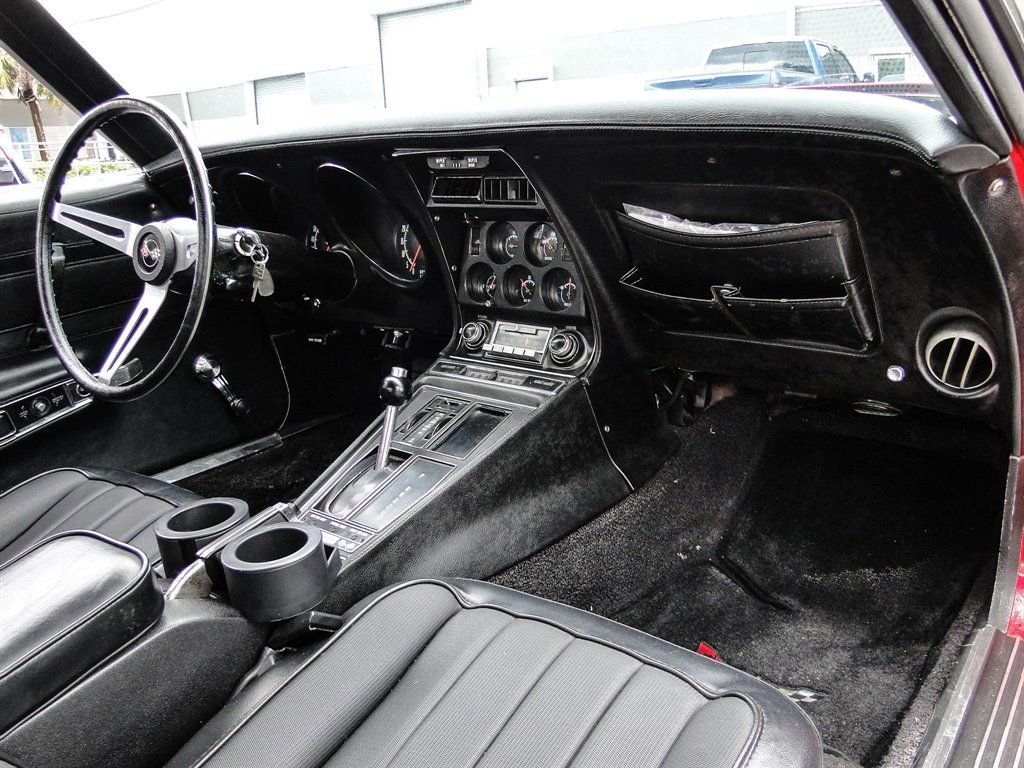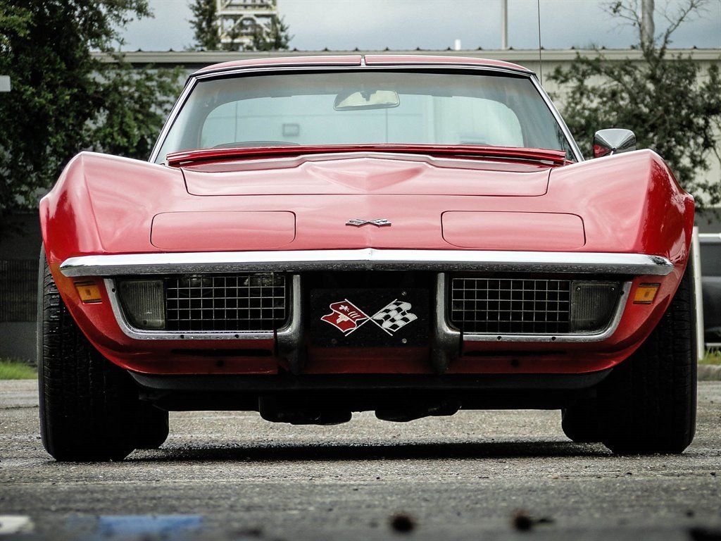 There isnt much cooler than a chrome bumper Corvette, and we are proud to bring this 1970 into inventory. This 1970 Chevrolet Corvette coupe has a lot going for it. The color combination is what this car left the factory with and is pure classic Corvette. Monza Red paint (code 974) with a Black interior (code 400) is what everyone pictures when they think of a classic Vette. The sexy curves of a C3 Corvette set these cars apart from the crowd. They look fast when they are parked! This particular car is well optioned and is a great driver. Options include power steering, power brakes, rally wheels, raised white letter radial tires, t-tops, vinyl interior, seat belts, AM radio and A/C (complete but not blowing cold). The chrome bumpers front and rear, rally wheels with chrome beauty rings and center caps, fender grills and Stingray badging take this Corvette over the top! Powered by the original 350 CID V8, she is ready to cruise and enjoy. The partial VIN stamping in the engine matches the car and it has the Date and Suffix codes of V012CTG, which decode to a 300 horsepower 350 V8 from a 1970 Corvette. The engine is backed by a 3-speed automatic transmission. The interior shows well with black vinyl bucket seats, Corvette seat belts pads and an aftermarket armrest that is essential for these cars. It comes with a car cover as well. There were several improvements for the 1970 Corvette. The fender flares were updated to prevent the tires from throwing up debris and causing paint damage. That was an issue for the 1968 and 1969 models. The fender louvers were redesigned for 1970, and the exhaust tips were rectangular instead of round. The front grilles were square mesh and the parking lamps went to clear lenses with amber bulbs. There were other changes to the interior and mechanical aspects of the 1970 Corvette as well. The 1970 production was stalled making it a very low production year with only 10,668 coupes made TOTAL for 1970.