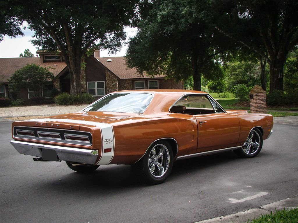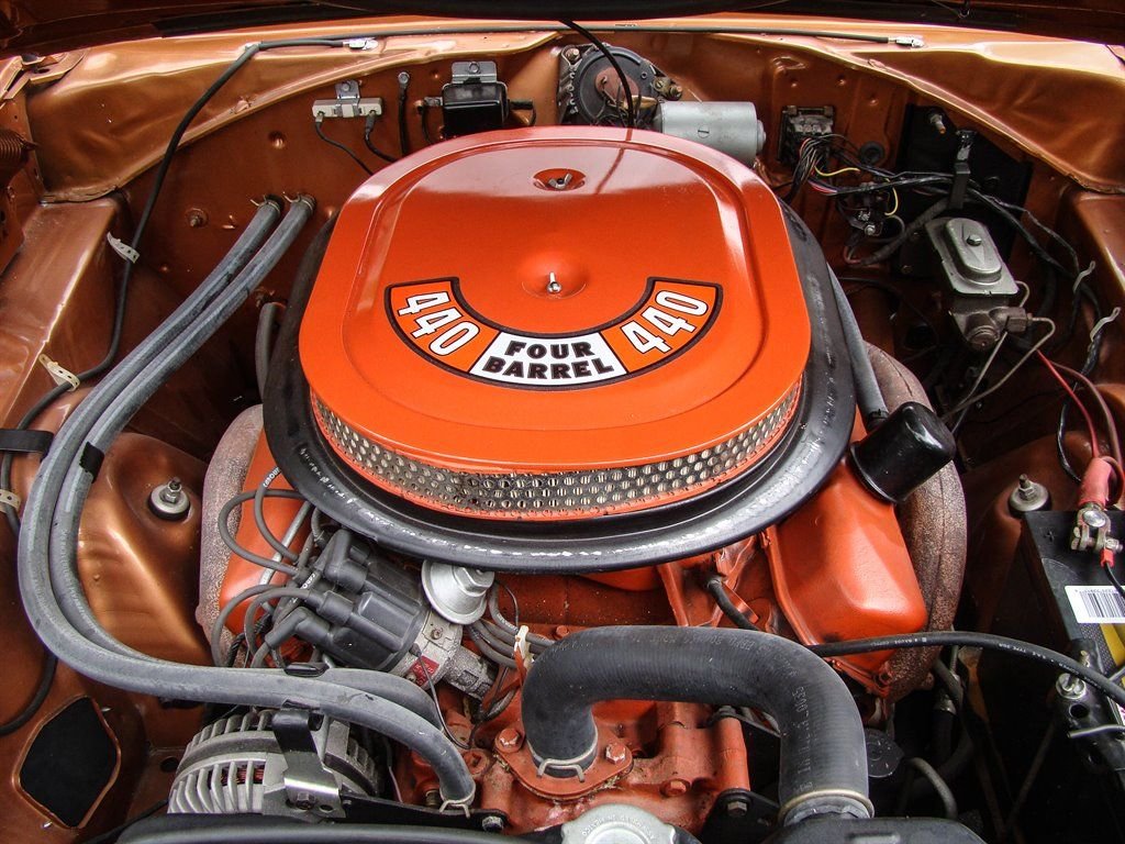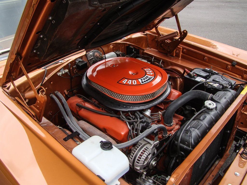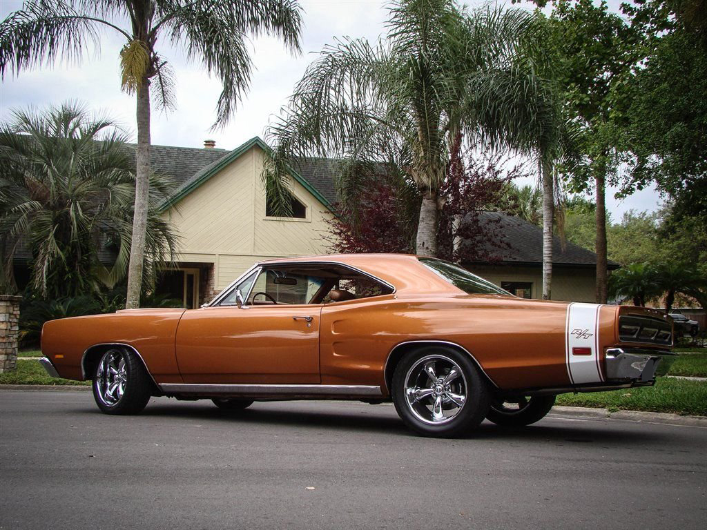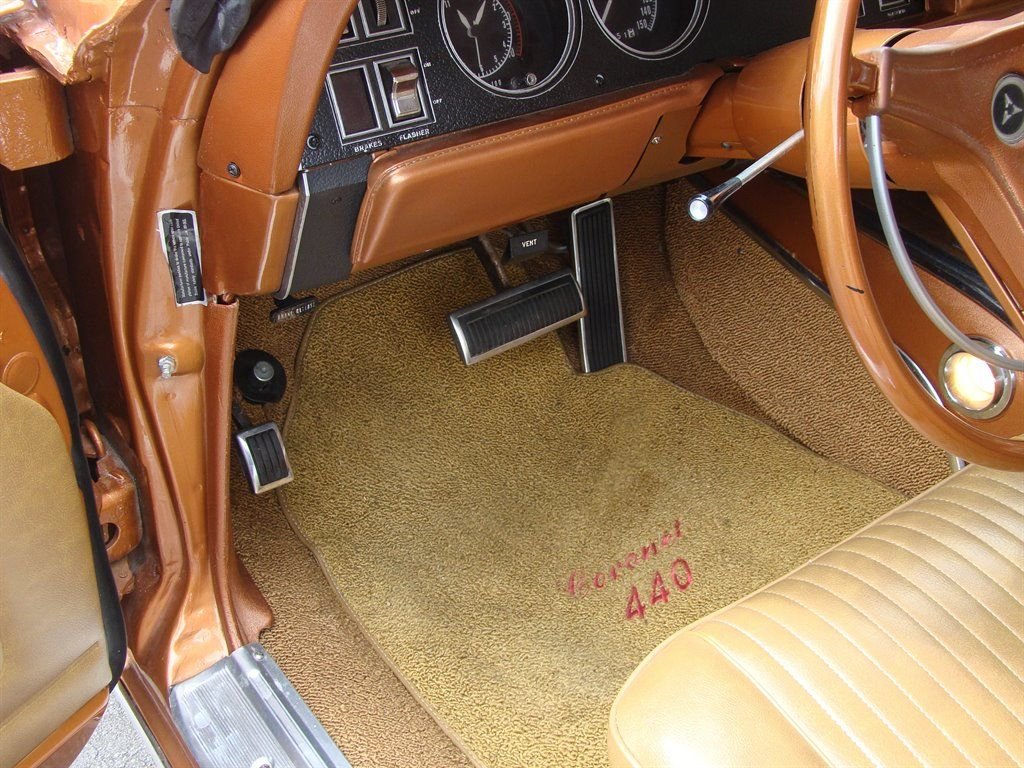 It doesnt get much better than a Mopar with its original numbers matching 440. Unless that 440 is in a 1969 Dodge Coronet RT! This Bronze beauty is all about raw power, ridiculously good looks and rarity. The original E86 code Hi-Performance 440 is backed up by a 3-speed automatic transmission and was rated at 375 horsepower from the factory. Anyone who knows will tell you that is underrated for insurance purposes. The correct T5 - Copper Poly paint looks absolutely amazing and is set off by the white tail stripe that proudly sports the R/T logo. The dual hood scoops, quarter panel coves and blacked out taillight panel scream muscle car and make us long for the cars of the late 60s again. Inside is restored in the correct P6T code Tan bucket seats with center console. Coronet R/T embroidered floor mats are a nice touch and this Mopar is equipped with seat belts. The AM radio with working 8-track player is still in the dash and adds a really cool feature to explain to youngsters at car shows. With only 4,810 of these Coronet R/T 440s produced, and 50 years of wrecks, rust and salvage yards in between, this is a rare collectible that is a solid investment. Besides being a great investment quality muscle car, who doesnt want to be seen driving this to the local car show or cruise night? This Coronet currently has Coys wheels, but the original wheels are available as well. It also has the optional light package and gauge package from the factory.