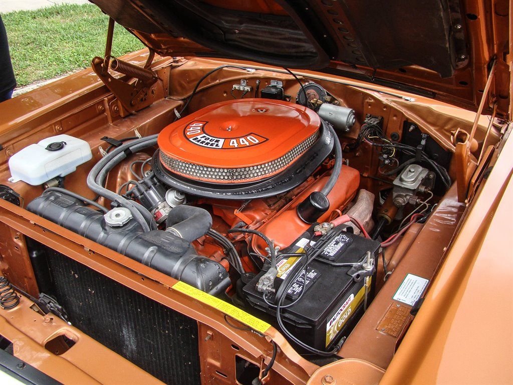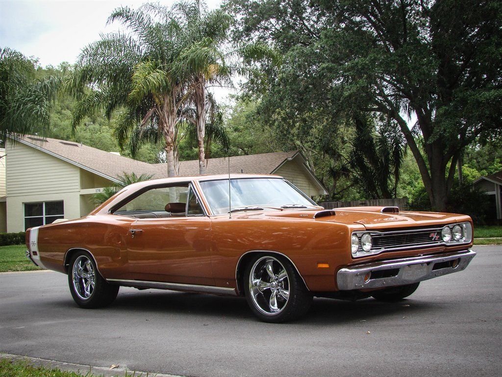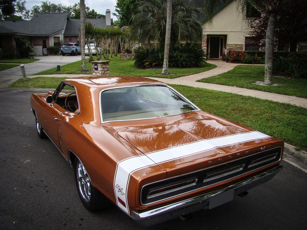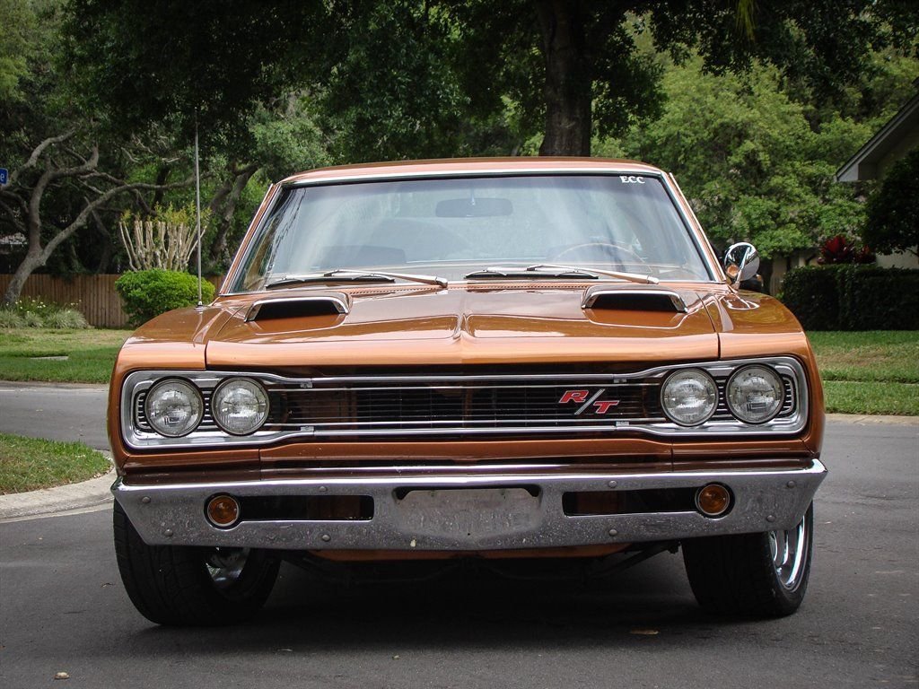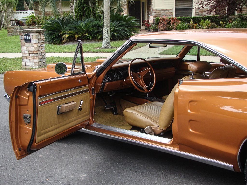 It doesnt get much better than a Mopar with its original numbers matching 440. Unless that 440 is in a 1969 Dodge Coronet RT! This Bronze beauty is all about raw power, ridiculously good looks and rarity. The original E86 code Hi-Performance 440 is backed up by a 3-speed automatic transmission and was rated at 375 horsepower from the factory. Anyone who knows will tell you that is underrated for insurance purposes. The correct T5 - Copper Poly paint looks absolutely amazing and is set off by the white tail stripe that proudly sports the R/T logo. The dual hood scoops, quarter panel coves and blacked out taillight panel scream muscle car and make us long for the cars of the late 60s again. Inside is restored in the correct P6T code Tan bucket seats with center console. Coronet R/T embroidered floor mats are a nice touch and this Mopar is equipped with seat belts. The AM radio with working 8-track player is still in the dash and adds a really cool feature to explain to youngsters at car shows. With only 4,810 of these Coronet R/T 440s produced, and 50 years of wrecks, rust and salvage yards in between, this is a rare collectible that is a solid investment. Besides being a great investment quality muscle car, who doesnt want to be seen driving this to the local car show or cruise night? This Coronet currently has Coys wheels, but the original wheels are available as well. It also has the optional light package and gauge package from the factory.