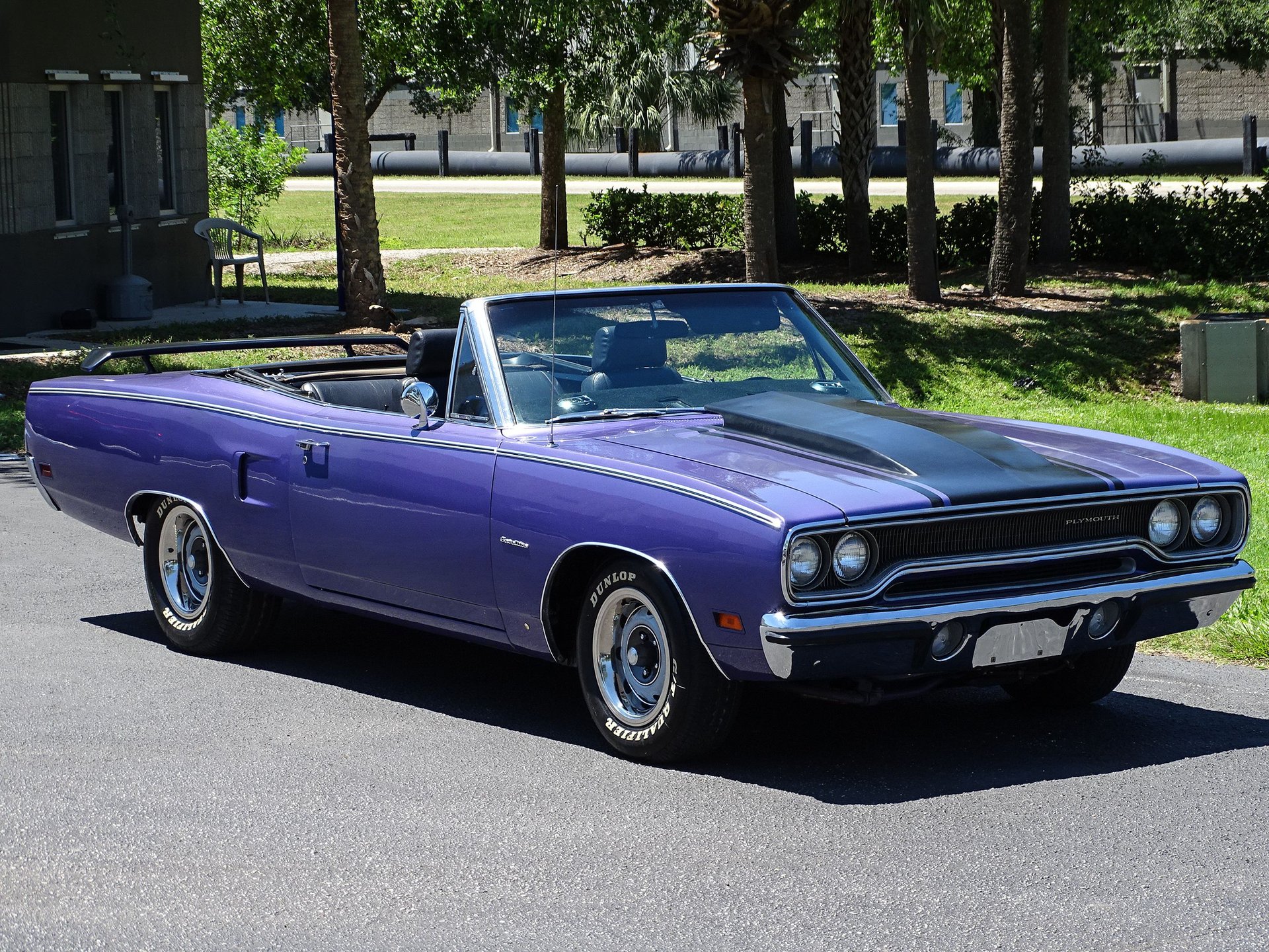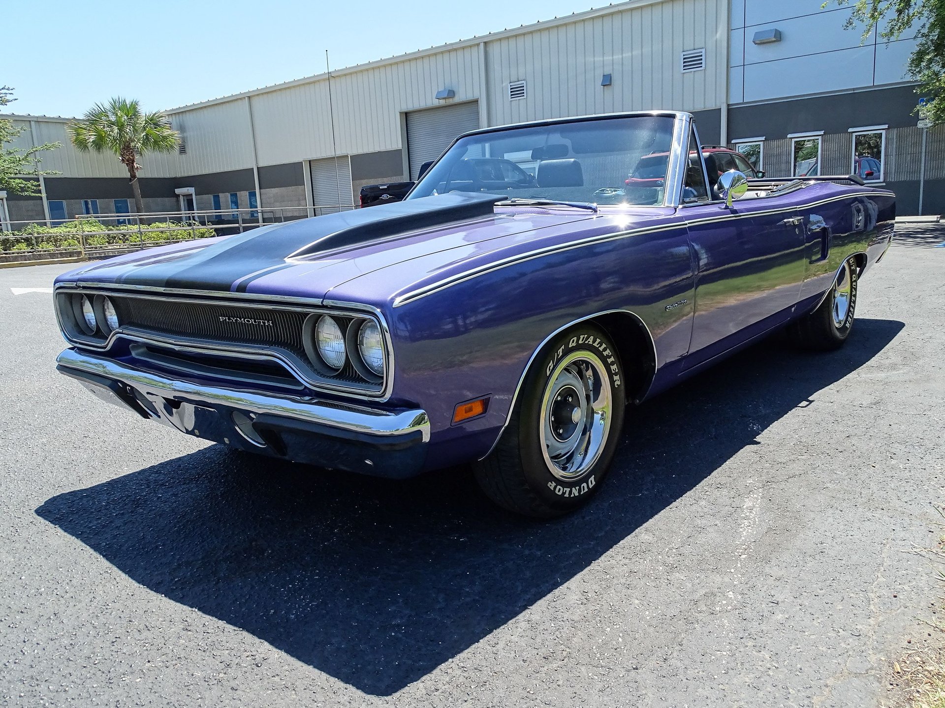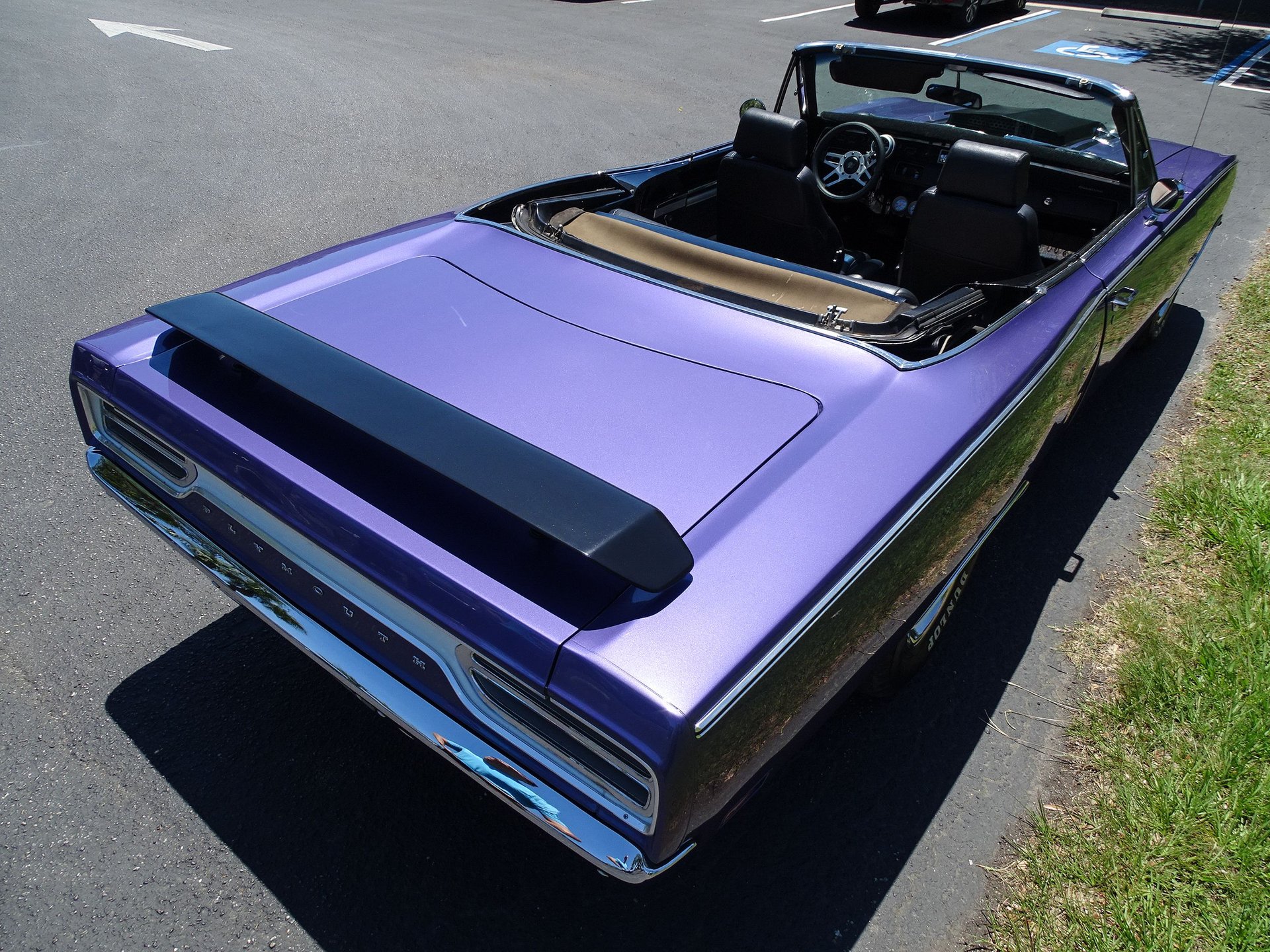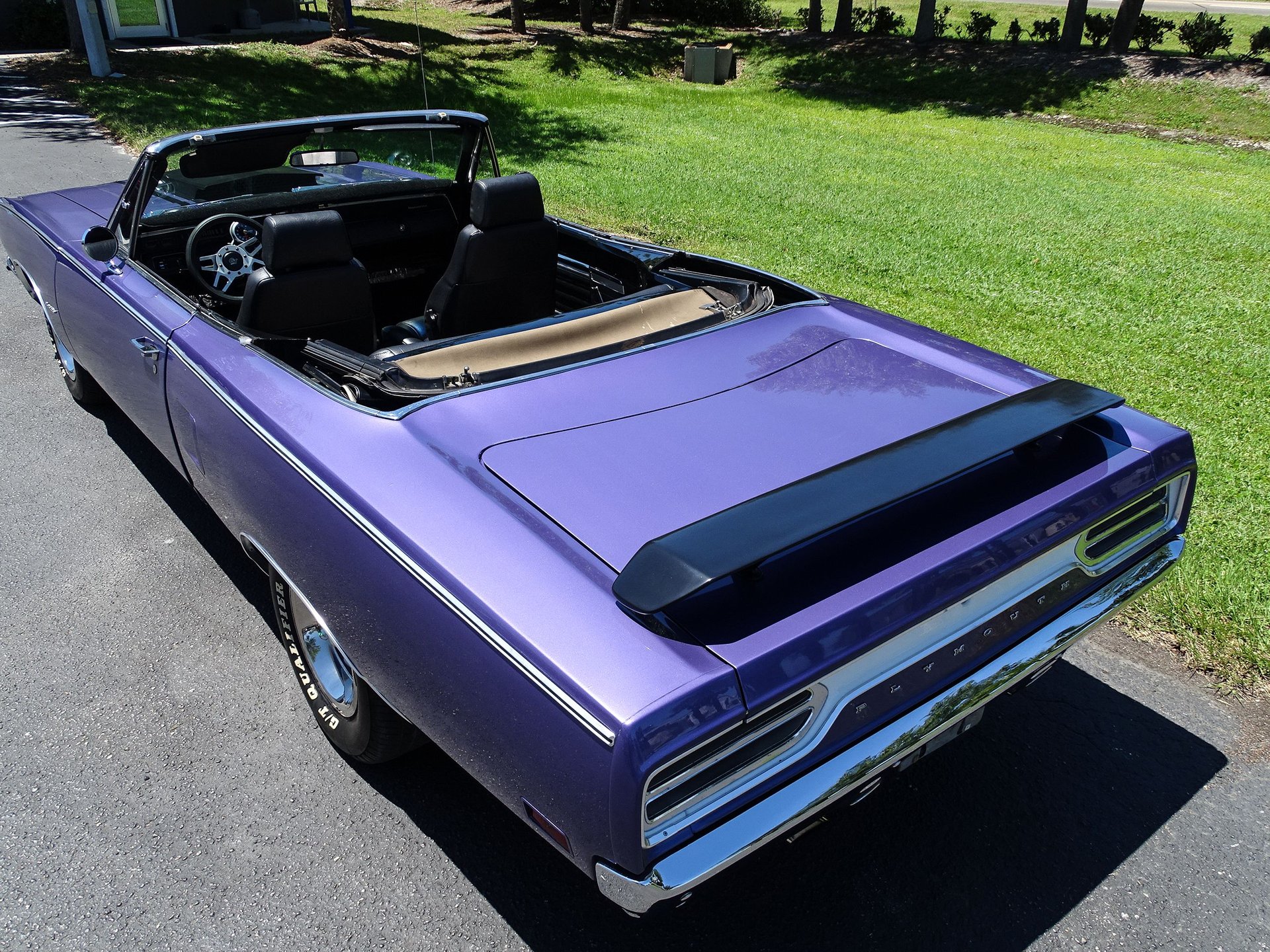 The Plymouth Satellite, sister to the Road Runner and GTX, is an iconic muscle car with big power, great body lines and an unmistakable sound from the horn! One of only 701 convertibles built for 1970 and big block power, watch out you have arrived. This particular example features a built 440 CID V8 under the hood with the infamous B&M shifter on the 3-speed automatic tranny. Out back is an 8 ¾ rear end with posi gears that get you going in a hurry! Slide into the bucket seat and grab the shifter and you will immediately understand why people love muscle cars. Turn the key and hear the 440 V8 roar to life through full-length headers and dual exhaust. That powerhouse is fed by a Quick Fuel Technologies 4-barrel carburetor on an Edelbrock intake manifold. A heavy duty radiator has been installed to keep things cool under the hood, even on long drives. The Plum Crazy paint with black center stripe looks absolutely stunning on this 2-door convertible Satellite. The paint is polished to a high shine and was just treated to a ceramic coating. The black stripe really accentuates the hood bulge the Satellite is known for. The interior is in black vinyl and grey suede. Mopar rally wheels give this car a sleeper vibe and maintain the factory look. This Mopar muscle car is incredibly clean and nicely restored inside and out. It is ready to show and is highly detailed.