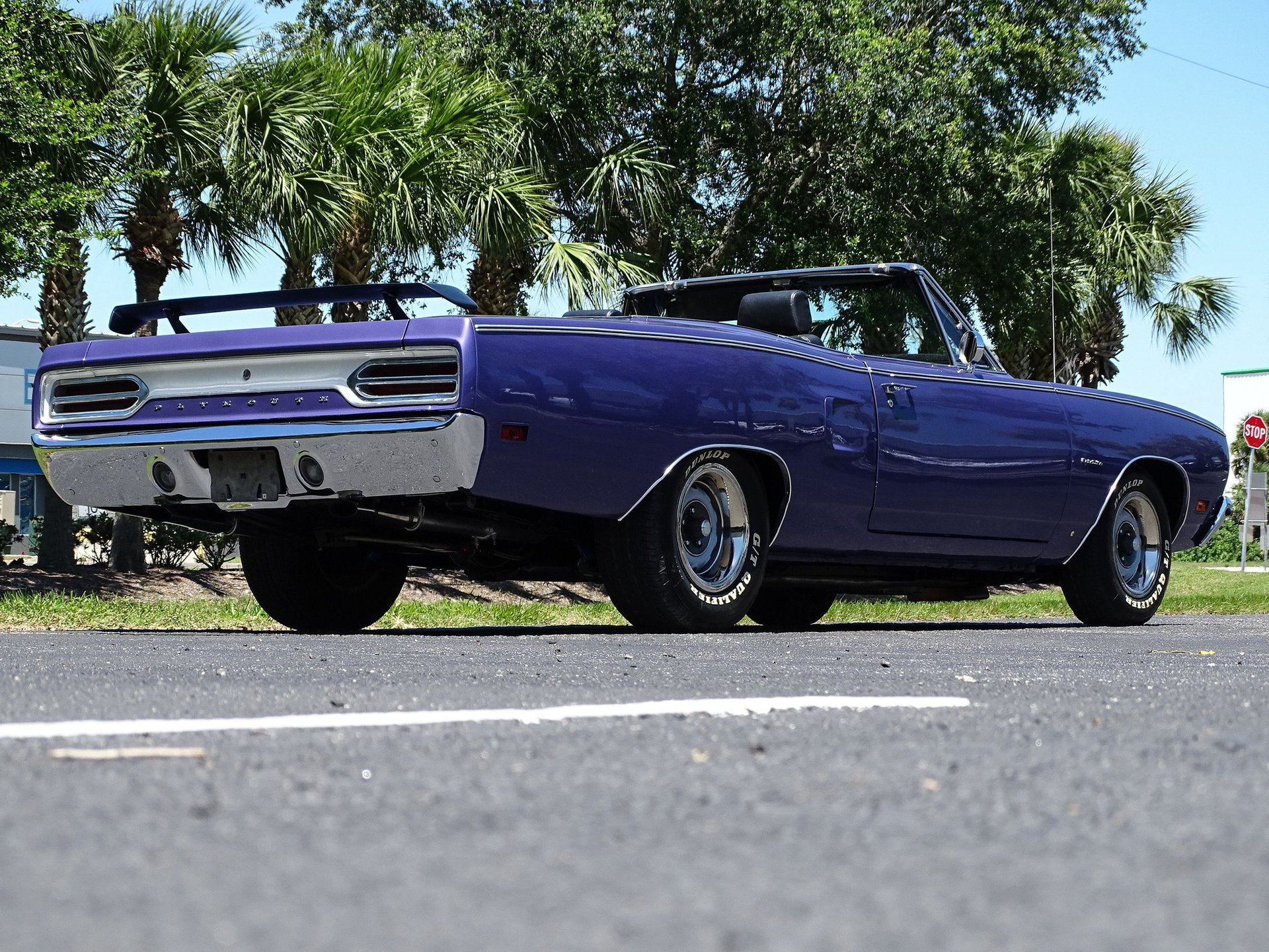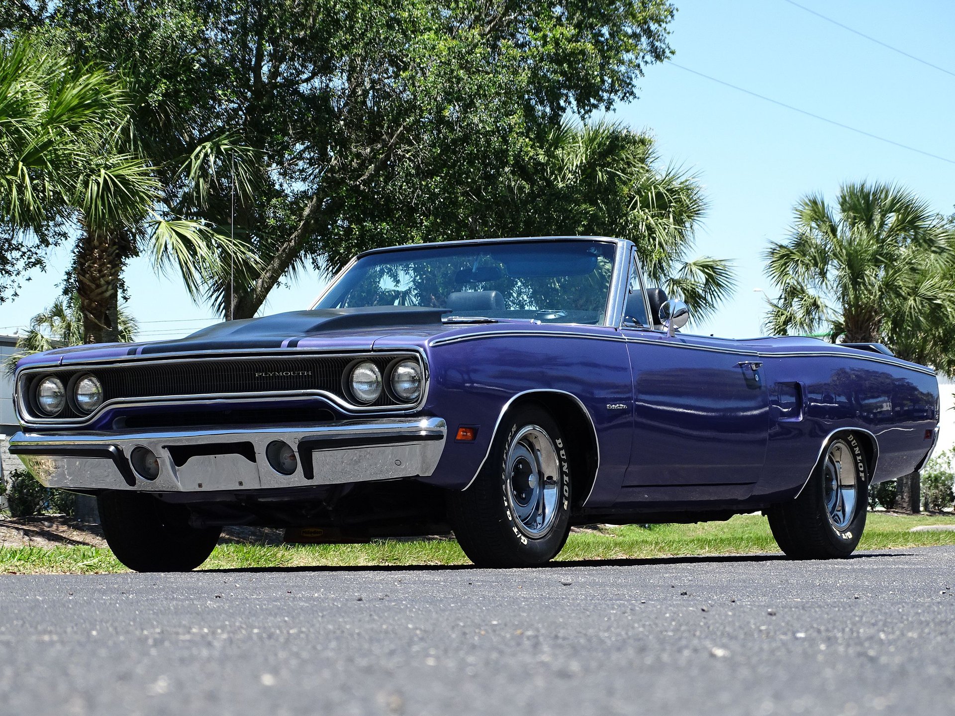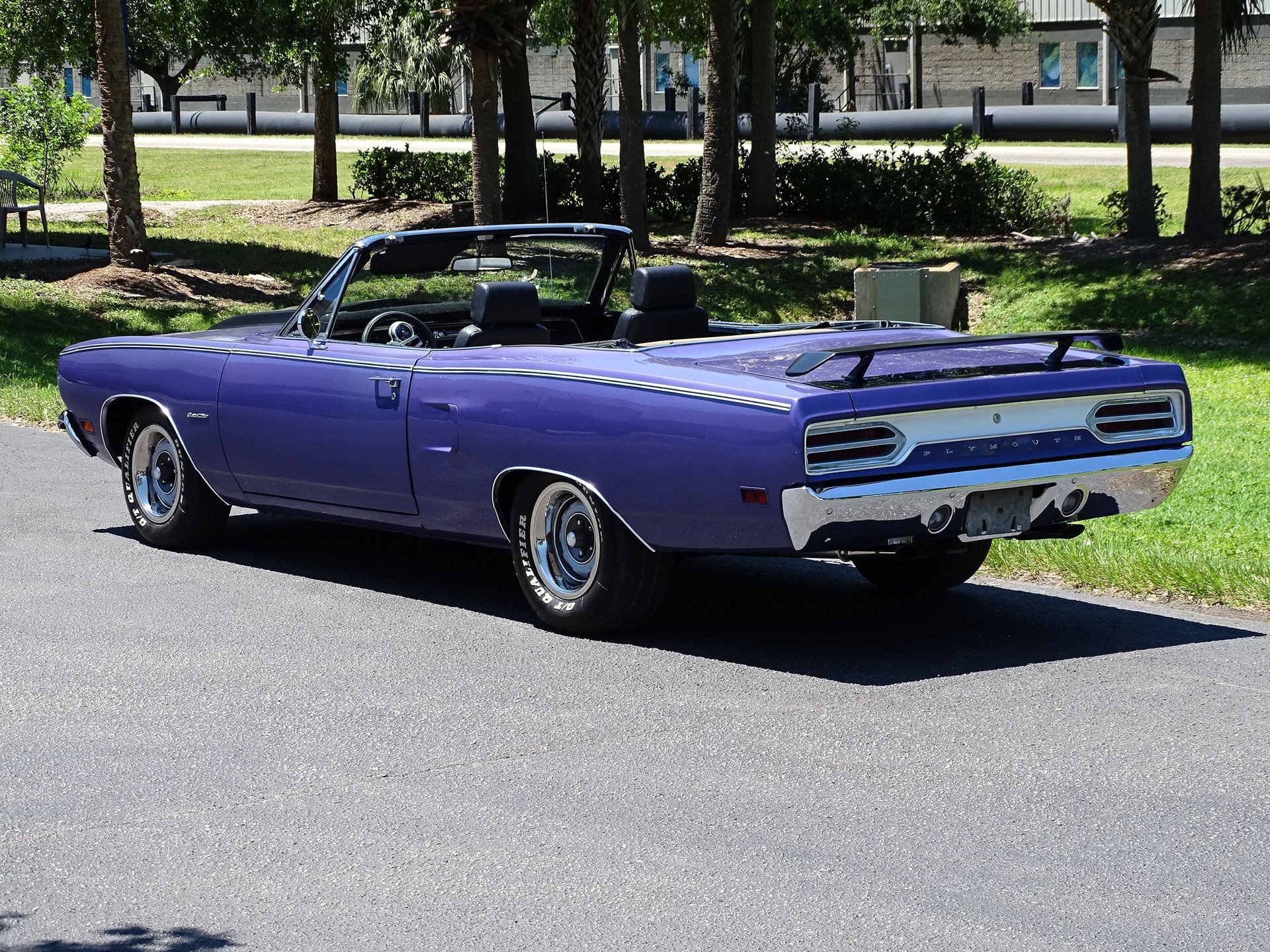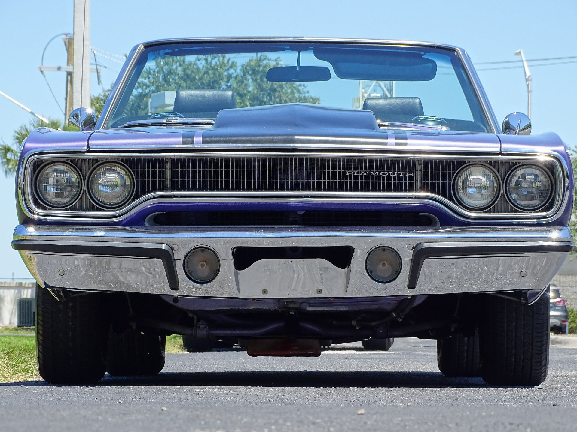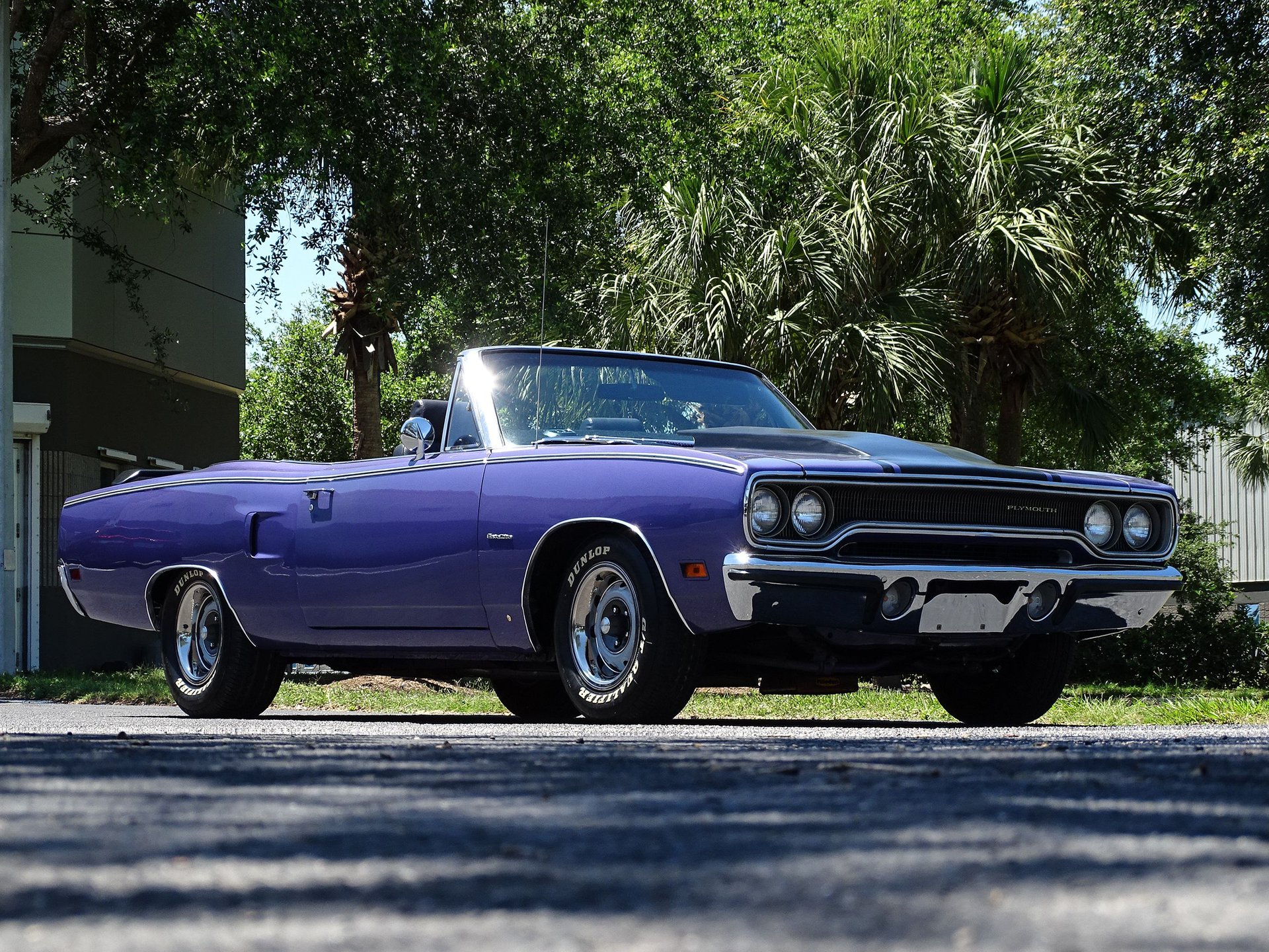 The Plymouth Satellite, sister to the Road Runner and GTX, is an iconic muscle car with big power, great body lines and an unmistakable sound from the horn! One of only 701 convertibles built for 1970 and big block power, watch out you have arrived. This particular example features a built 440 CID V8 under the hood with the infamous B&M shifter on the 3-speed automatic tranny. Out back is an 8 ¾ rear end with posi gears that get you going in a hurry! Slide into the bucket seat and grab the shifter and you will immediately understand why people love muscle cars. Turn the key and hear the 440 V8 roar to life through full-length headers and dual exhaust. That powerhouse is fed by a Quick Fuel Technologies 4-barrel carburetor on an Edelbrock intake manifold. A heavy duty radiator has been installed to keep things cool under the hood, even on long drives. The Plum Crazy paint with black center stripe looks absolutely stunning on this 2-door convertible Satellite. The paint is polished to a high shine and was just treated to a ceramic coating. The black stripe really accentuates the hood bulge the Satellite is known for. The interior is in black vinyl and grey suede. Mopar rally wheels give this car a sleeper vibe and maintain the factory look. This Mopar muscle car is incredibly clean and nicely restored inside and out. It is ready to show and is highly detailed.