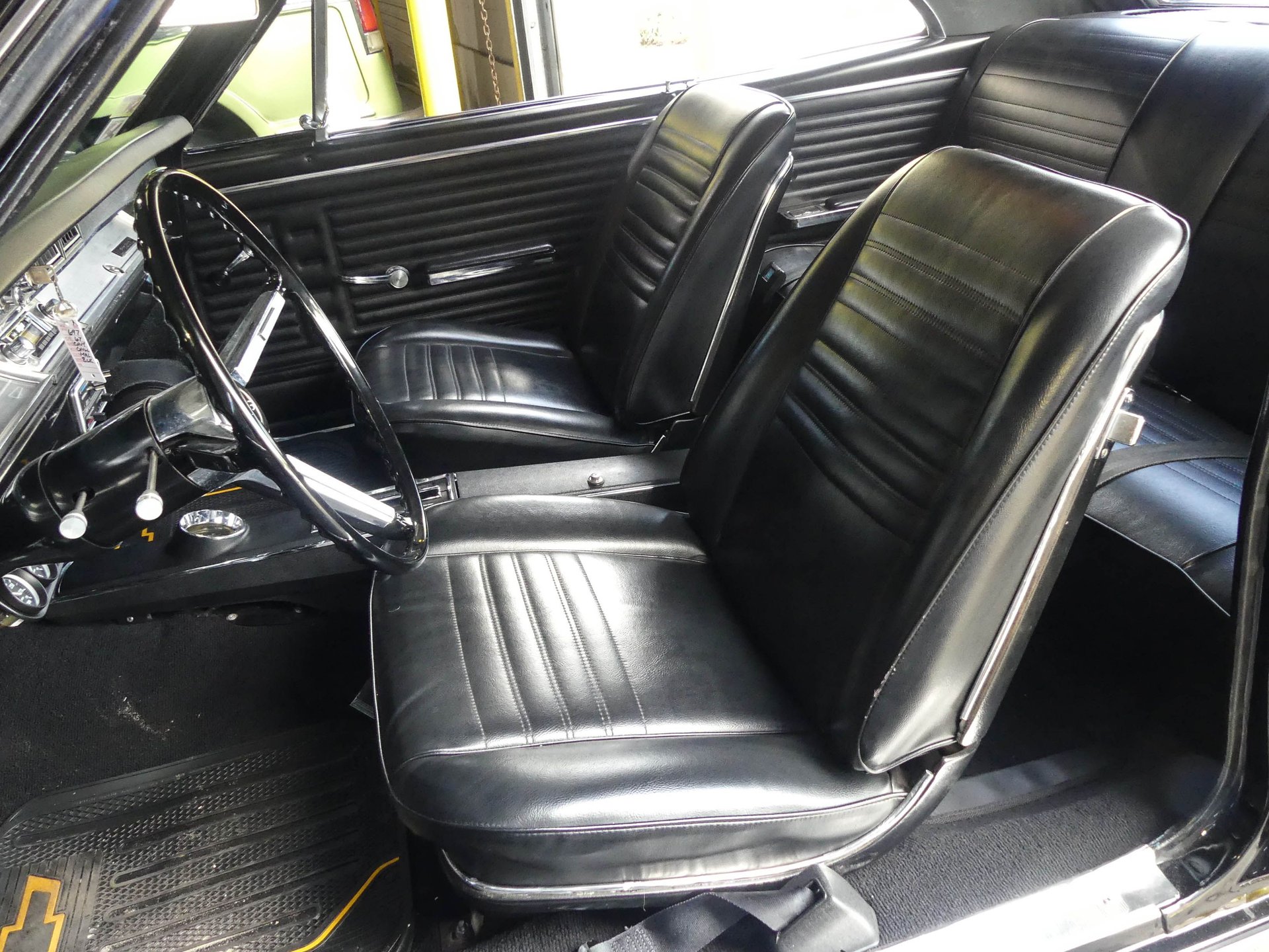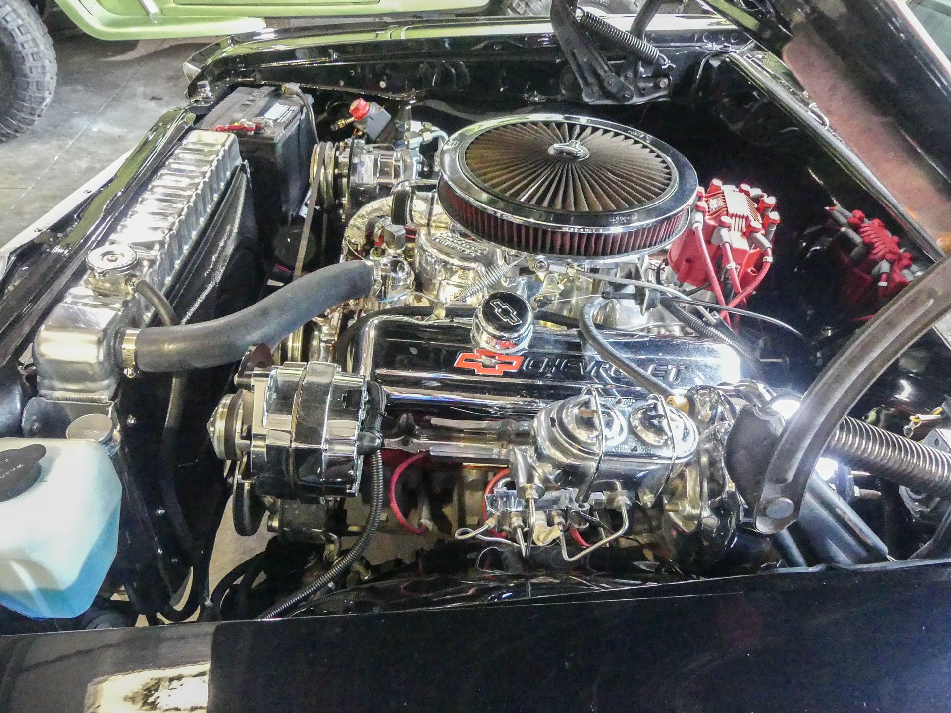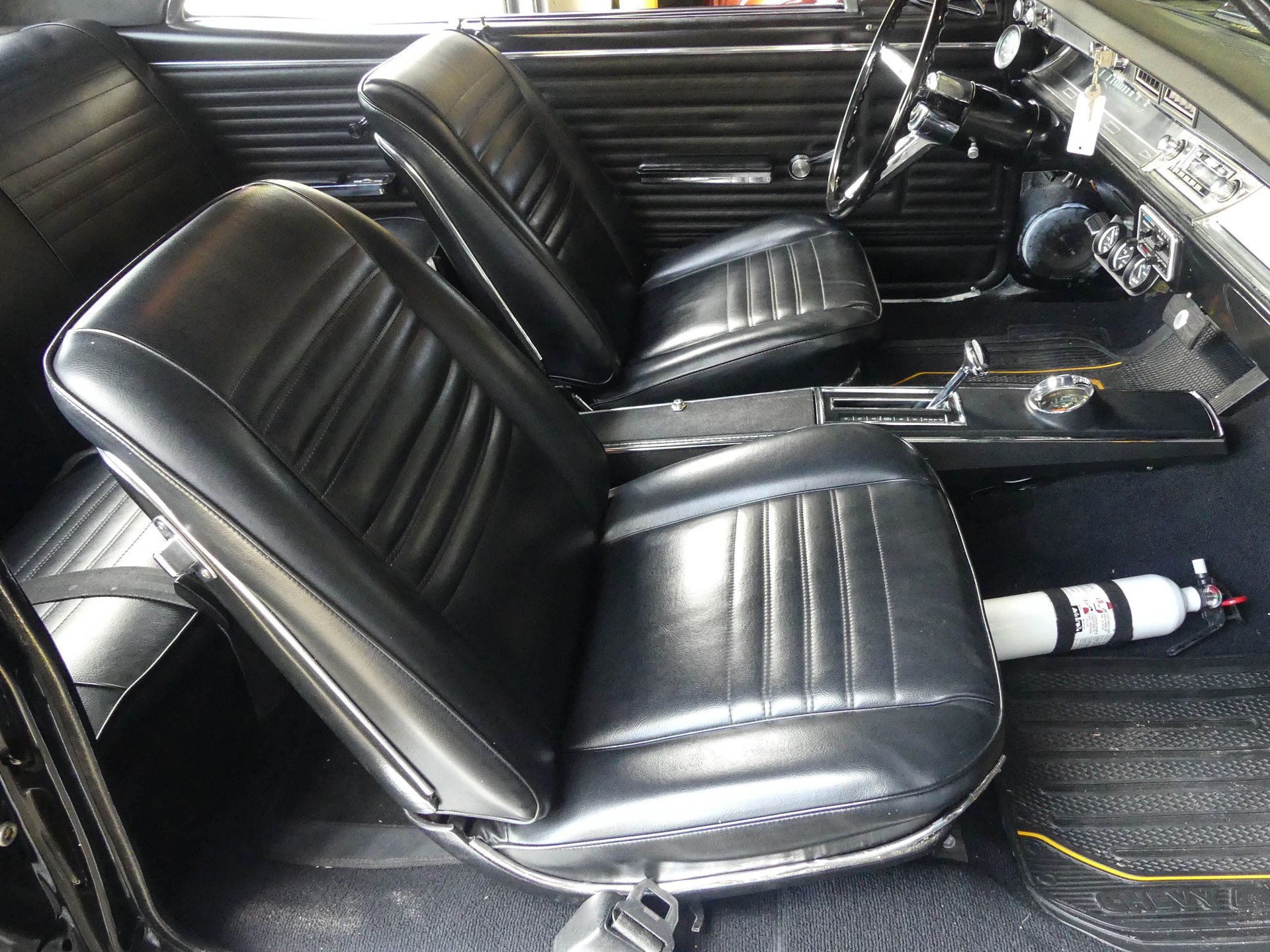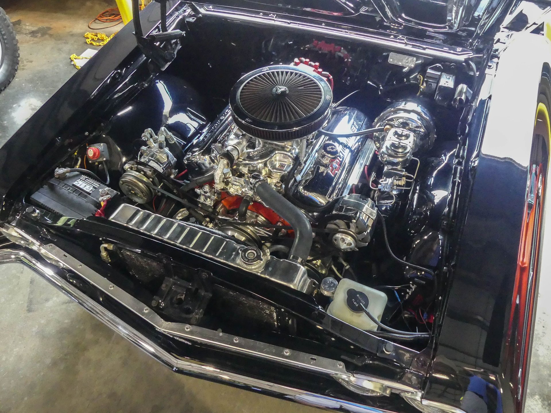 Under that Super Sport hood sits a rebuilt correct 1967 Chevy 396 CID V8 with mild cam, Edelbrock Performer 2.0 polished intake, Edelbrock AVS 2 carburetor, and an MSD HEI distributor. The engine is kept cool with an aluminum radiator with electric fan and shroud. Dual exhaust runs through Flowmaster mufflers, but also feature cut-outs if you want to get really rowdy! The engine compartment is ready to show with a nicely smoothed firewall, chrome brake booster and master cylinder, chrome valve covers, K&N air cleaner, chrome water pump, billet radiator overflow, painted and polished inner fenders, and more!
