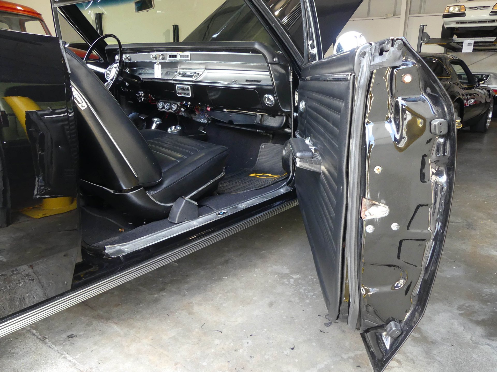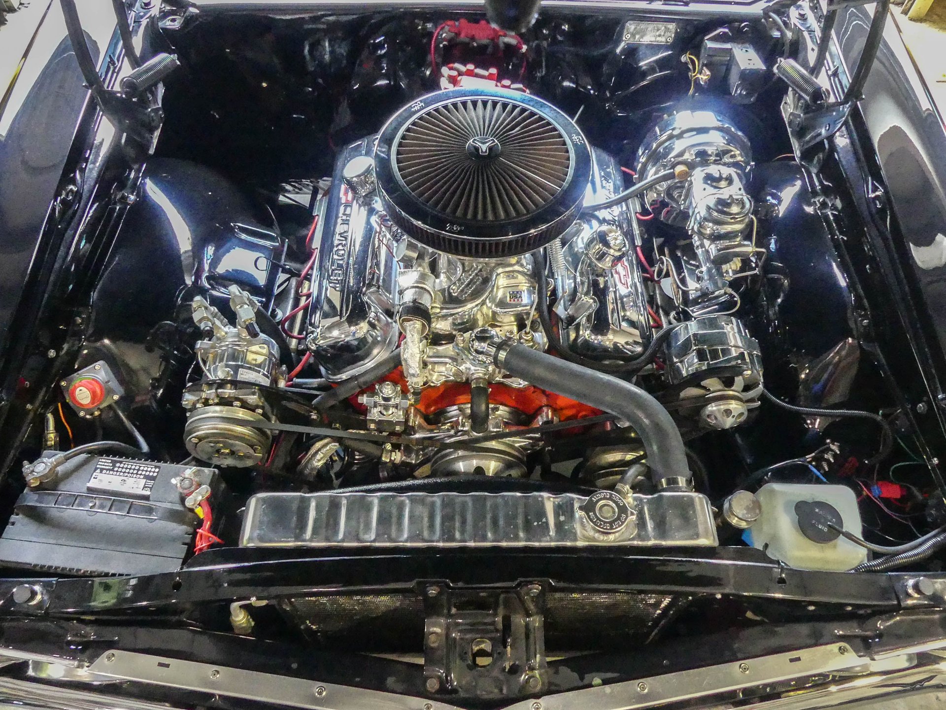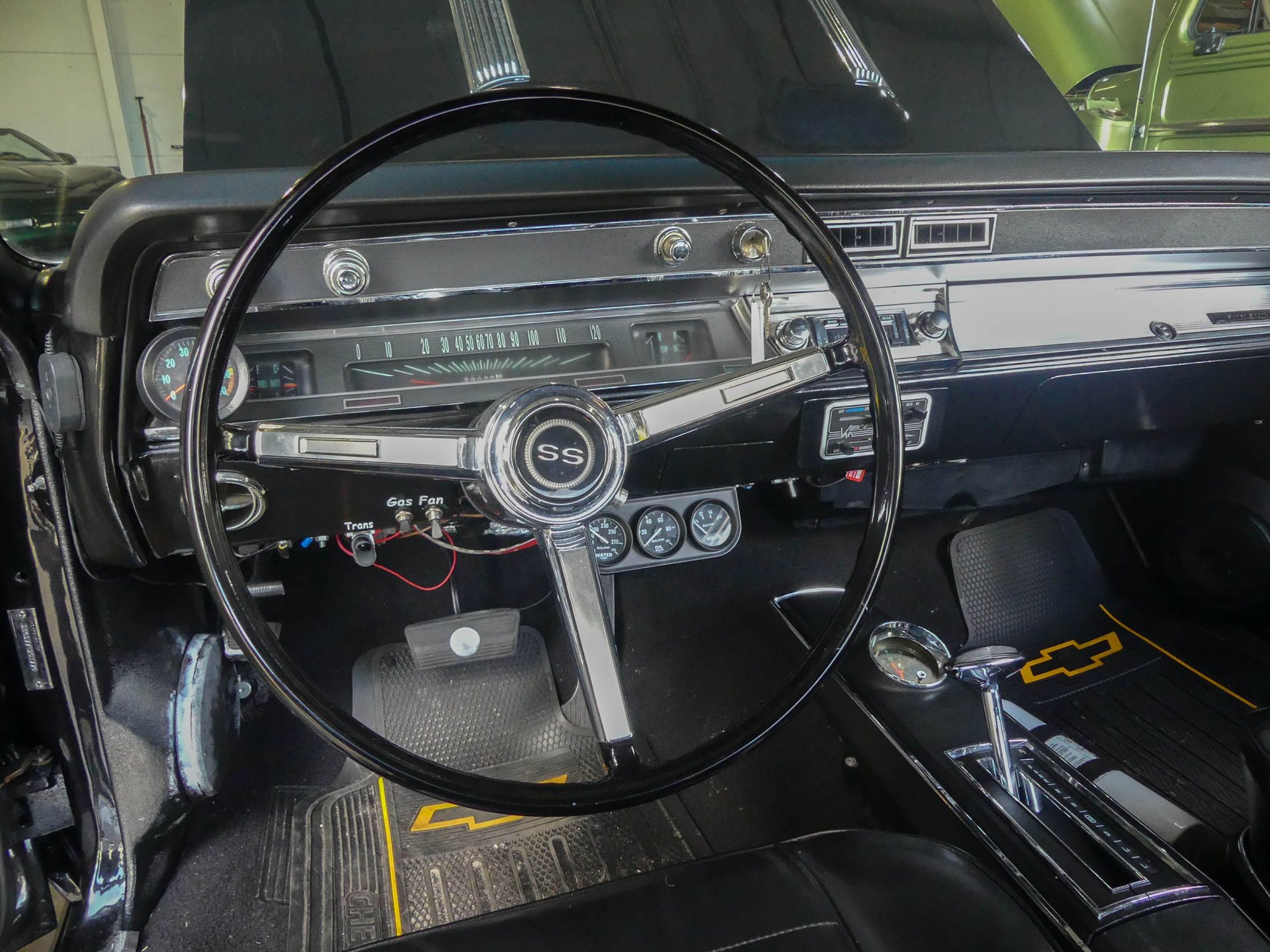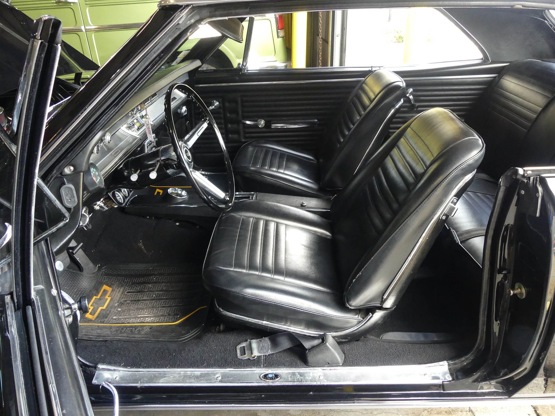 Under that Super Sport hood sits a rebuilt correct 1967 Chevy 396 CID V8 with mild cam, Edelbrock Performer 2.0 polished intake, Edelbrock AVS 2 carburetor, and an MSD HEI distributor. The engine is kept cool with an aluminum radiator with electric fan and shroud. Dual exhaust runs through Flowmaster mufflers, but also feature cut-outs if you want to get really rowdy! The engine compartment is ready to show with a nicely smoothed firewall, chrome brake booster and master cylinder, chrome valve covers, K&N air cleaner, chrome water pump, billet radiator overflow, painted and polished inner fenders, and more!