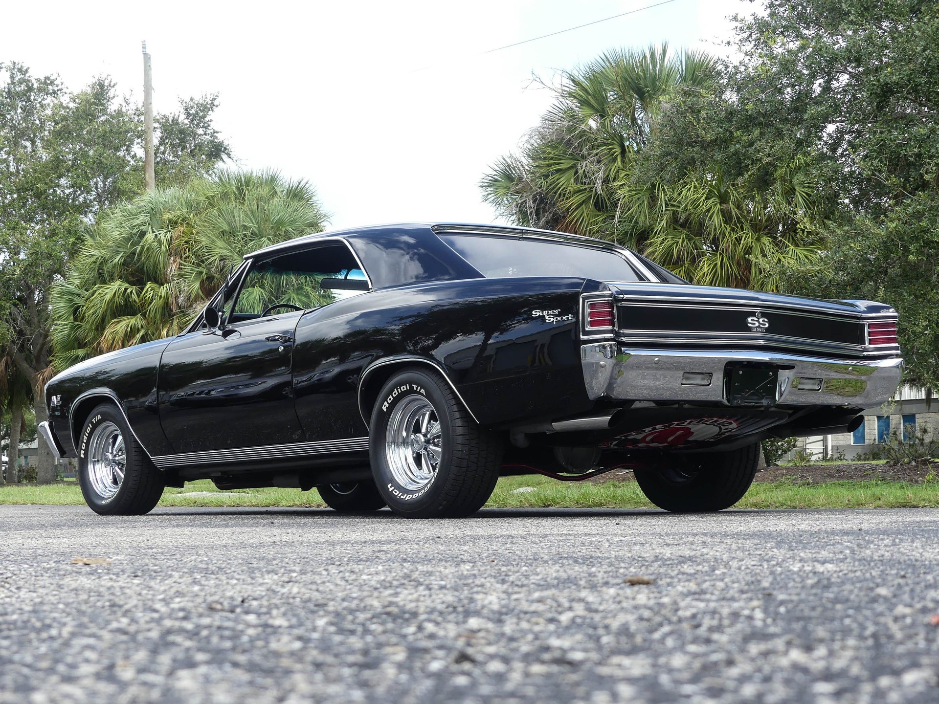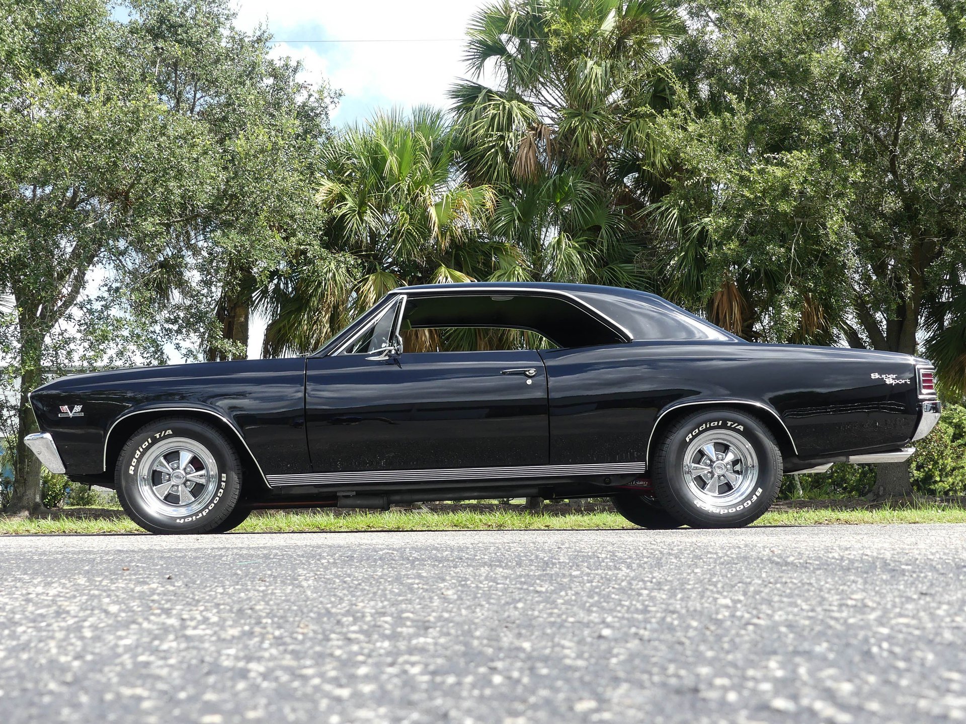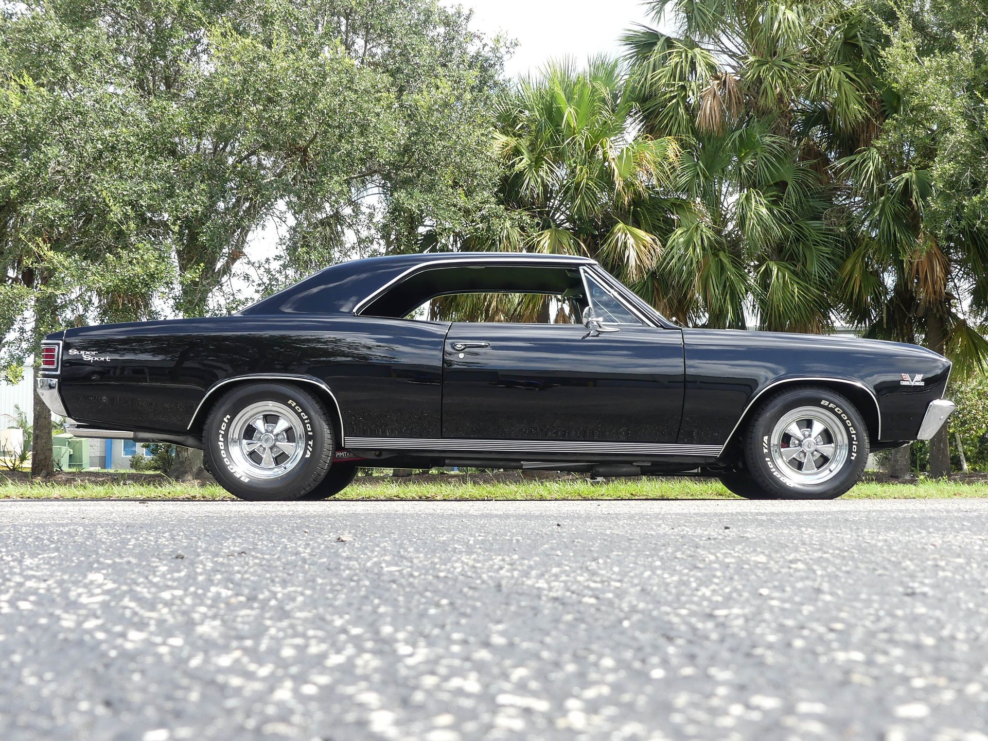 This car had a 5-year frame-off restoration and it shows. You won't find a cleaner, straighter, or tighter 67 Chevelle in this price range. The ceramic coated Jet Black paint is paired with classic Cragar SS wheels wrapped in BF Goodrich Radial T/A raised white letter tires. Chrome exhaust tips exit the rear and SS badging adorns the front/rear and fenders. An SS hood is a must on a 67 Chevelle and this baby has it!